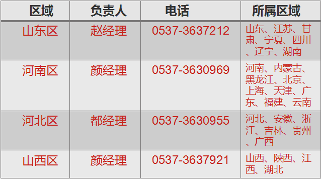 電話:400-6583998 座機:0537-3423038 郵編:272100 聯(lián)系人:趙經(jīng)理 傳真:0537-3630969