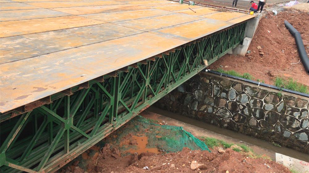 該項目位于湖南省長沙市境內,用于中鐵十六局長沙地鐵6號線施工時黃花機場停車場臨時用橋。整橋長21米寬9米。該橋不僅確保了原有道路交通通暢,還避免了車輛繞行,大大的提高了工程的建設效率。貝雷鋼橋有高效、環(huán)保、低成本、施工時間短等優(yōu)點。而建造貝雷橋,浩潤路橋已經(jīng)有10年的歷史和經(jīng)驗,在行業(yè)中已經(jīng)獲得很多客戶的認可和支持,我們和很多大公司都有合作,如中建、中鐵、鐵建、中交公司等等。選擇我們就選擇了專業(yè)。